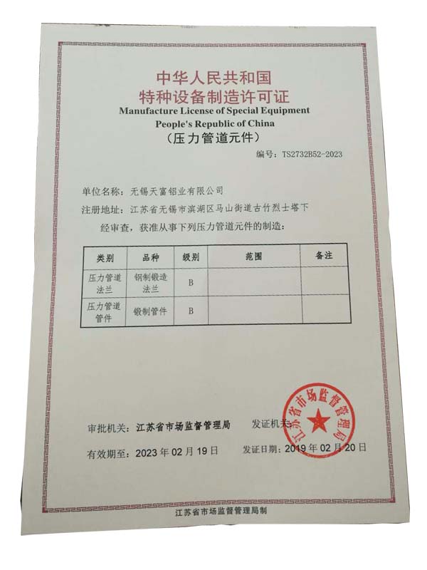 無錫天富鋁業(yè)(常州誠達(dá)鋁業(yè))專業(yè)生產(chǎn)各類焊接鋁管、無縫彎管、任意角度無縫鋁彎管、焊接鋁彎管、鋁三通(鍛件)、鋁肩圈、鋁縮接、鋁管帽、法蘭、焊接襯圈、“O”型圈、非標(biāo)無縫鋁彎管、接管?筛鶕(jù)用戶需求定制各類彎管、肩圈、縮接、管帽、襯圈、接管,可按照用戶圖紙定制。同時(shí)也承接不銹鋼、碳鋼及其他材料的彎管、肩圈、縮接、管帽、襯圈、接管等。我們擁有壓力管道設(shè)備生產(chǎn)許可證, 可從事特種設(shè)備的制造!